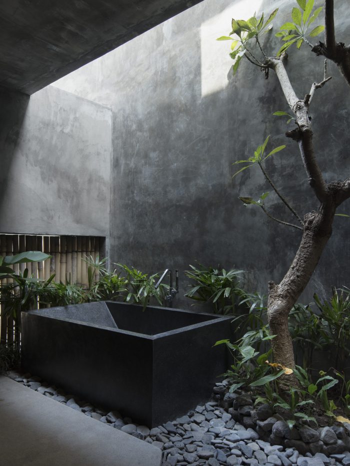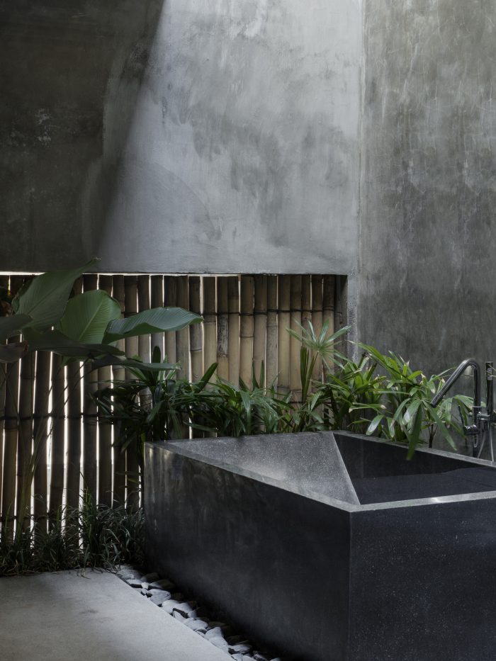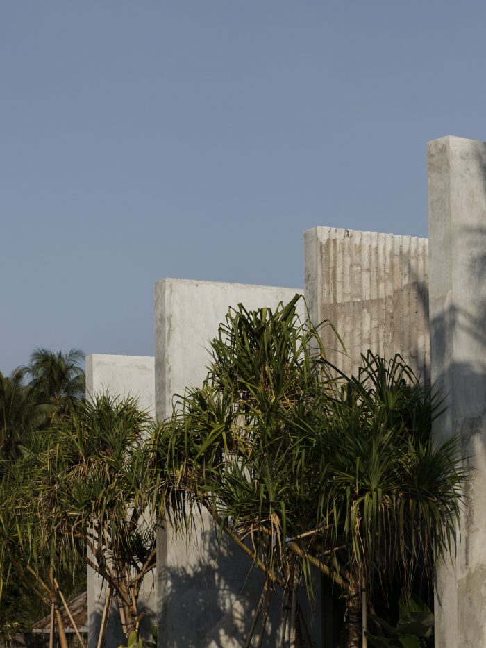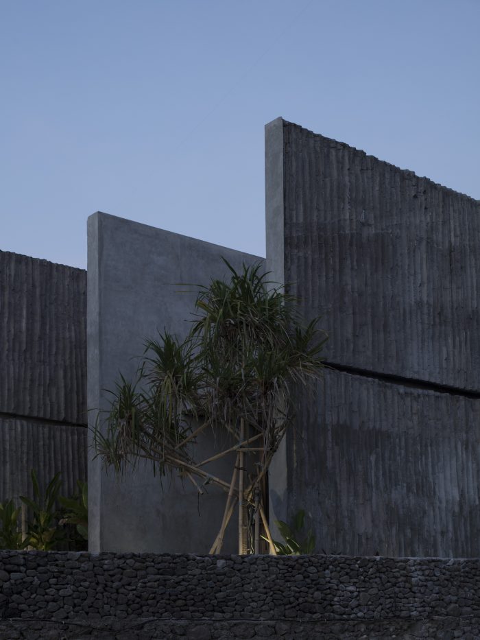At each end, the walls become shear, referencing local Balinese gateways prevalent throughout the island. These gateways are highly decorated totems, shear-cut on the travel path to encourage the eye and the spirit to drift onwards.