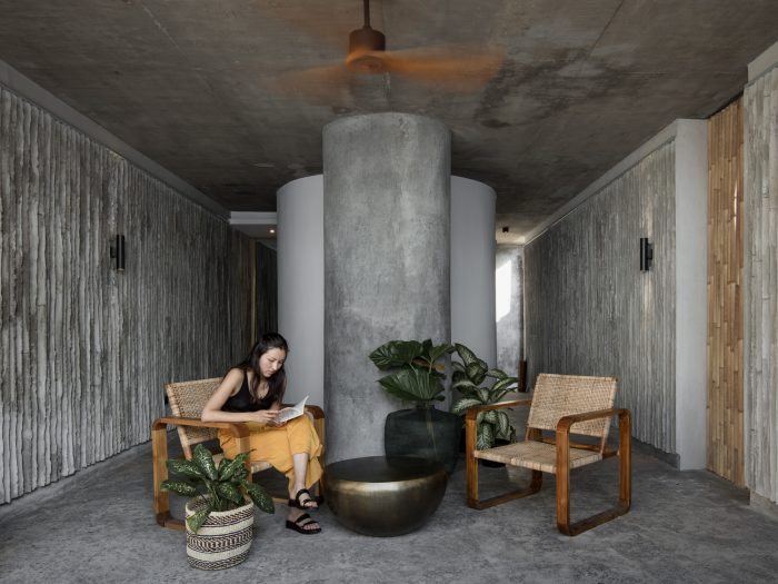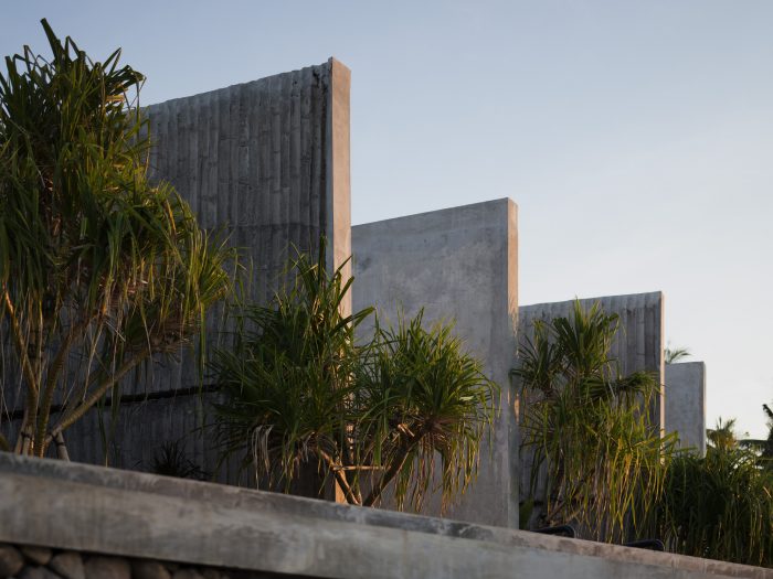 Due to its remote location, the design deliberately leans on traditional materials and construction techniques, while providing a robust conceptual framework. Knowing that concrete is the preferred construction method of Bali and that bamboo is plentiful, a series of bamboo formed concrete walls were erected on-site to create in-between and inside conditions, framing the mountains and the sea.