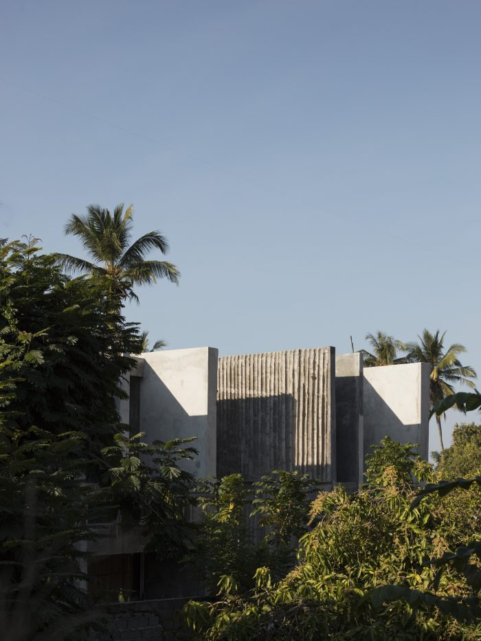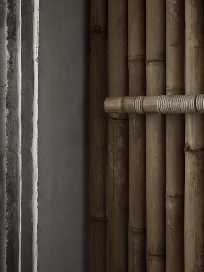 这个项目的材料性旨在在当地的环境、建筑技术、资源和气候中工作;一种粗犷的地域性。混凝土和竹子非常丰富,所以最好全程使用这些材料。在热带气候下,干净的饰面需要大量的维护,在这里,材料会风化,增强建筑和地方的特色。重要的是,这也成为了饰面。将竹子的质感和形态表现为混凝土铜锈中的负面印象,成为这个项目的主题。