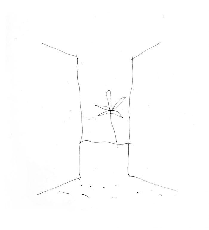Hidden centrally in the plan is the washing space. This is a rare moment of slick finish in an otherwise unadorned project. Each space has a light well, connecting the occupant back to the sky from the darkness of this isolated space. Protected, hidden, and central, this space becomes a welcome surprise, a place of refuge and delight. This is a place for unwinding reconnecting to the self and to nature.