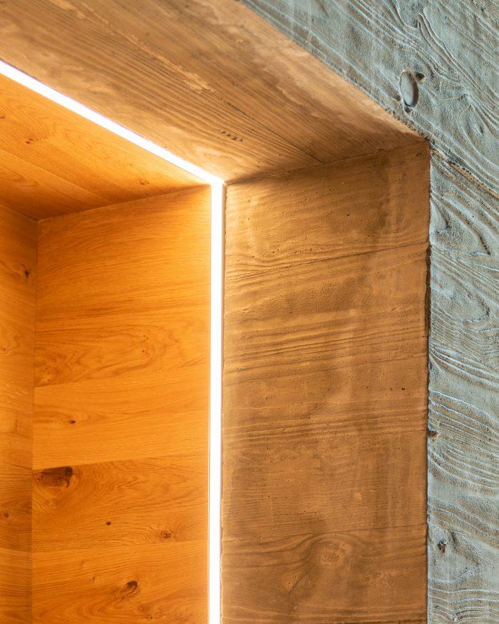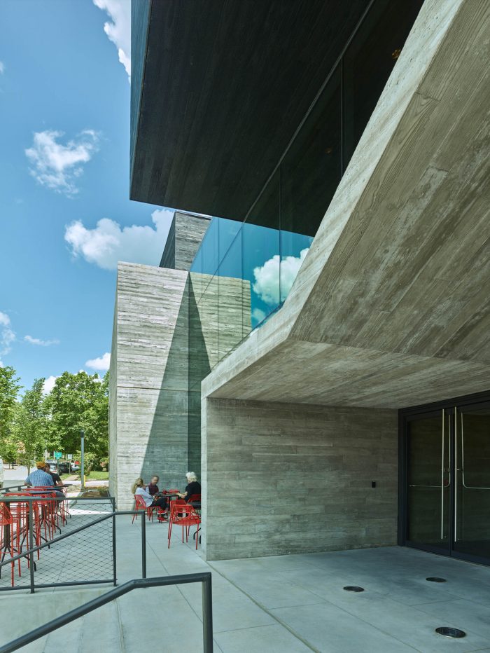 In the natural expression of a theater as a place of storytelling, the materials used narrate the livelihood of the space. The building is an expression of the Northwest Arkansas region. A limited material palette was used with priority given to durability, flexibility, and the building’s technical and performance systems. Wood and concrete play a role in every space of the building, whether it’s constructed furniture out of trees felled from the site, recycled wood for interior finishes, or concrete that provides a durable finish, the materials are economically resourceful and efficient way.