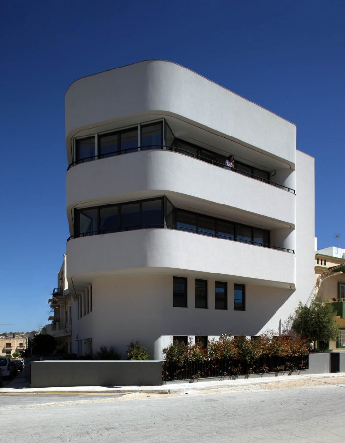 Replacing a dilapidated single-storey dwelling sited between two of Malta’s most beloved villages, Threeplusone takes cues from its surrounding context whilst addressing contemporary living needs, prioritising light, space and functionality. The building responds stylistically to its inherited street-scape, echoing the elegance of massing, volume, and proportion of a Modernist corner house that sits across the road from its site.