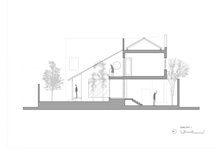 The client's brief was to build an inward-looking space, hiding away from the hustle and busy street outside but still keep close to nature. A separate living space, with green gardens, aquariums where small family members can observe, direct contact with nature, a feature that is necessary for an urban living space. The existing land has only a few mature "Trees" and these need to be kept, this is an important task in our research process.