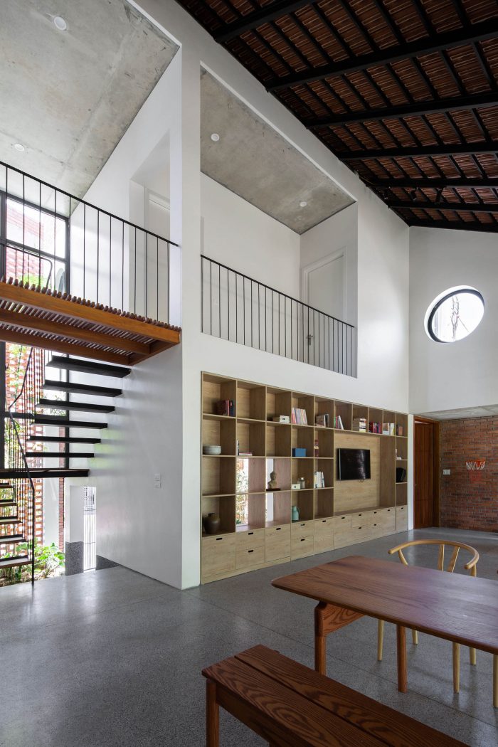 The owner is a photographer, who has a fondness for raw materials and crafts, so bare bricks, grindstones, natural wood, bare concrete are the main materials used for this project construction. The house is representative of the lifestyle of the people living in it, along with the concern for the journey to build and complete the house most completely and suitably.