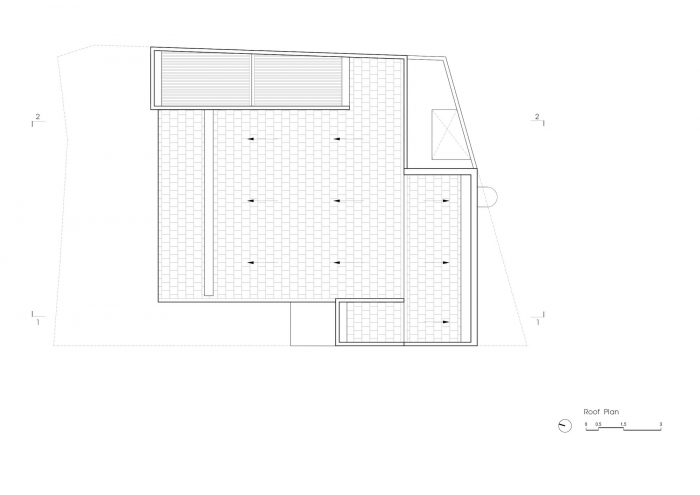 一个多层次空间的想法逐渐形成,从外部蔓延到内部,从内部蔓延到外部。空间的分类和排列是场地从外到内的水平层,其中第一层是辅助空间,如车库、厕所、楼梯和小花园,车库现在作为一个大的前廊,用于主空间的后退,第二层是主要的生活空间,包括大厅、厨房的客人,第三层是一个扩展的门廊,最后一层是一个花园,有许多树木和一个小水族馆。