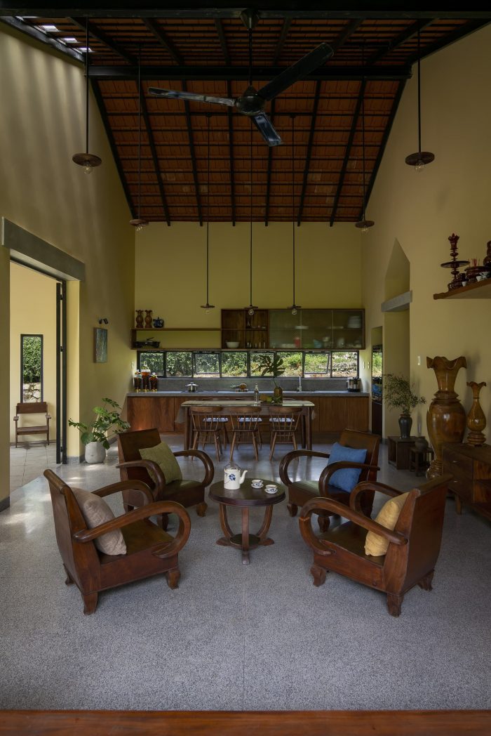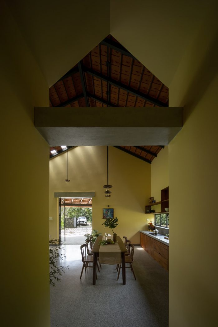 主要空间通过门洞和大型窗户直接接近室外空间,带来了振奋人心的绿色景观,并接受自然光,同时还可以看到绿色稻田和茂密森林的景色。在房子里的人可以沉思的景色和自然的美丽。此外,在寒冷的日子里,看到雾蒙蒙的山,或在收获季节到来时看到成熟的金色谷物,这个空间为人的心灵创造了一种休息的感觉。