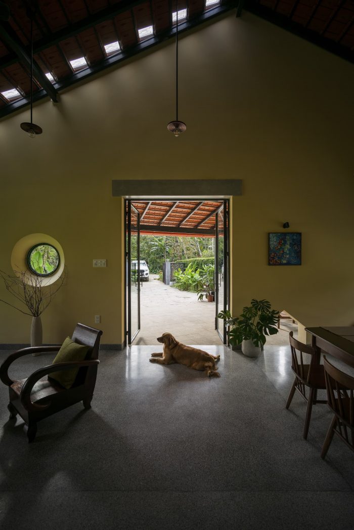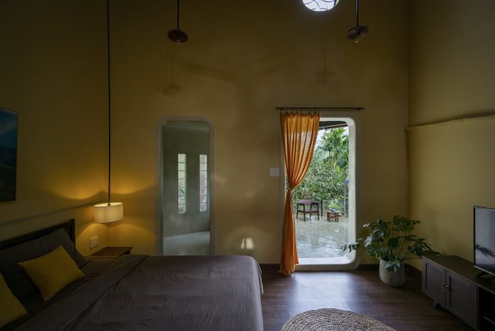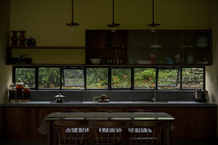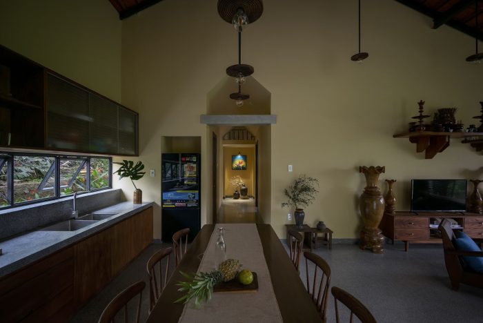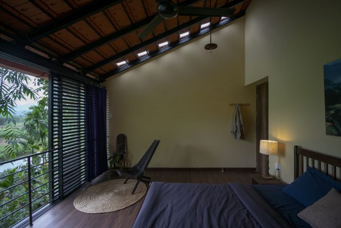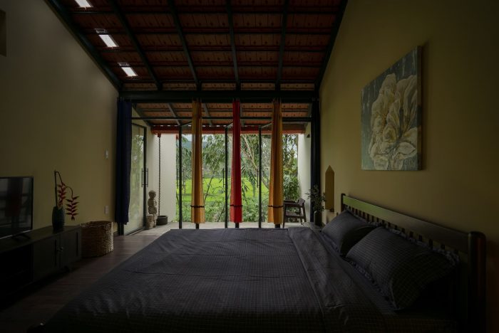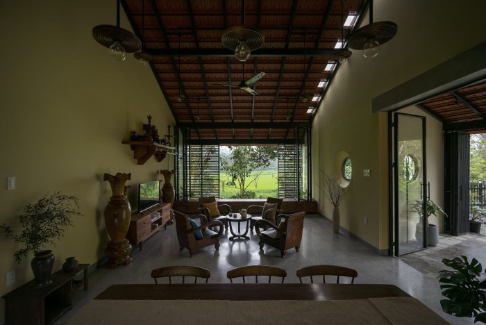 Main spaces approach directly to outdoor spaces through doorways and large-scale windows, which bring the invigorated green landscape and receive the natural light, along with the scenery looking out the green paddy field and lush forest. People in the house can contemplate the view and the beauty of nature. Furthermore, the space creates a sense of rest for the human mind with the sight of foggy mountains on cold days or the ripe golden grain when the harvest season comes.