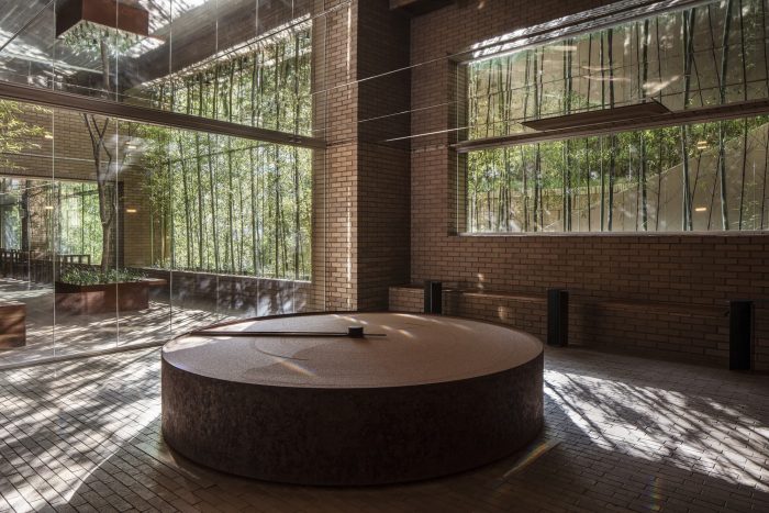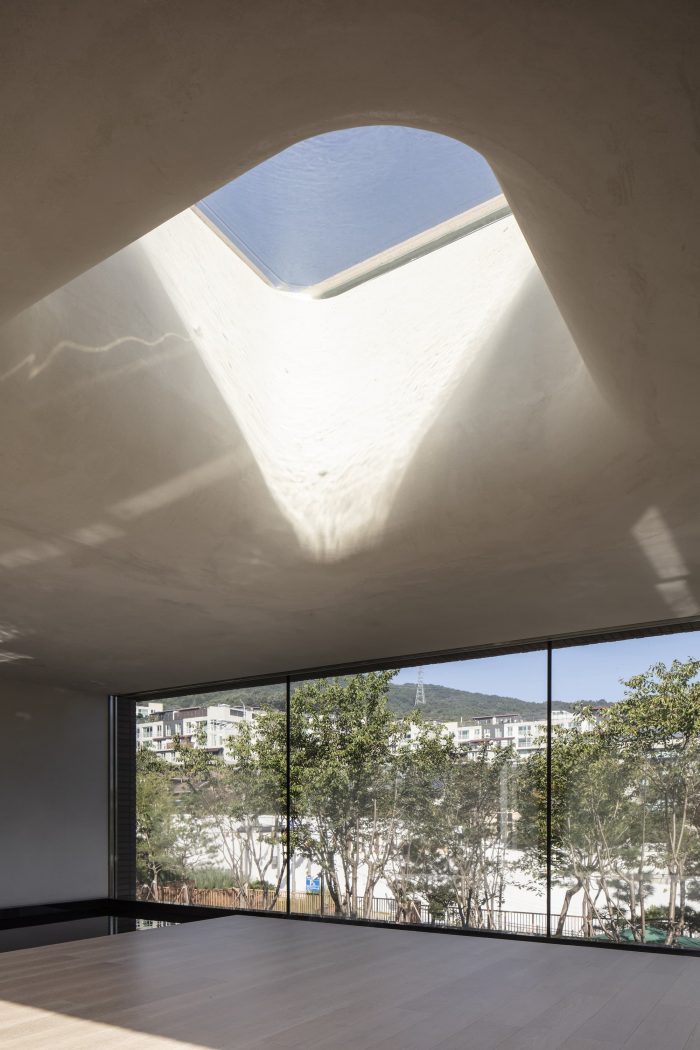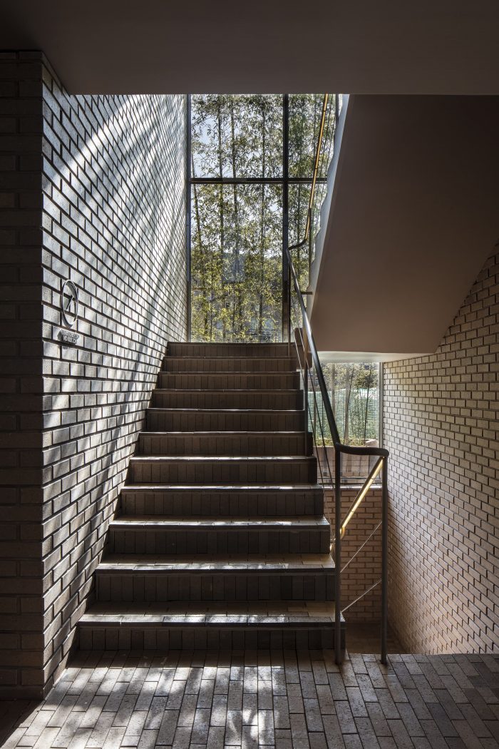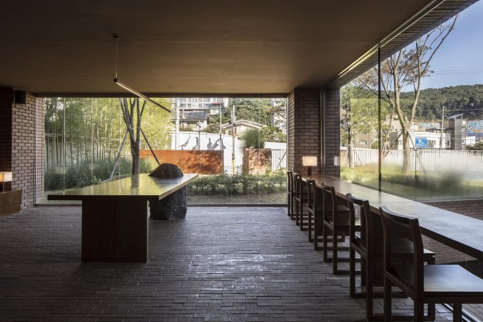 ‘Bricks’ made of soil, which can be found everywhere, are materials implying time and durability. We delivered a unified image using bricks as the primary materials inside and outside, for they remain valuable and do not change easily over the years. We created a void space through the bricks combined outside and those partly segmented inside. This captures the actual movement of light and allows people to feel the phenomenological sense of rhythm according to the change of time.