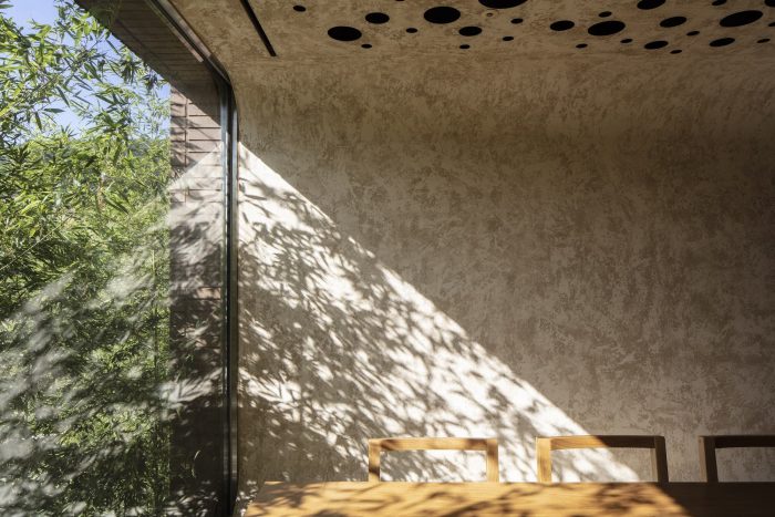 由土壤制成的'砖块',随处可见,是意味着时间和耐久性的材料。我们用砖头作为内部和外部的主要材料,提供了一个统一的形象,因为它们仍然是有价值的,并且不容易在多年后改变。我们通过外面的砖块和里面的部分砖块的组合创造了一个空隙空间。这抓住了光线的实际运动,让人们根据时间的变化,感受到现象学上的节奏感。