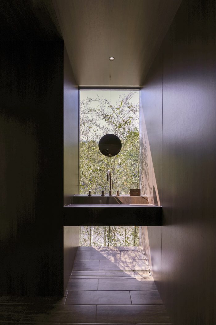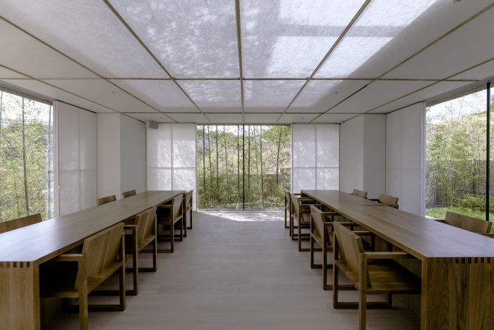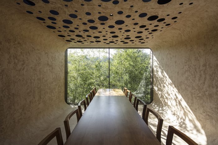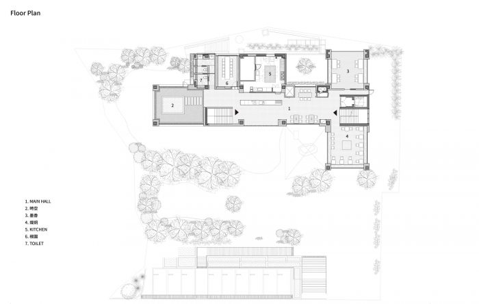 Passing through a path in nature faces space. We intended limited movement on the water and induced an extensive spatial experience through the wide-facing entrance. We planned the inner first floor, connected horizontally with the site, as an extension of the nature of the land.