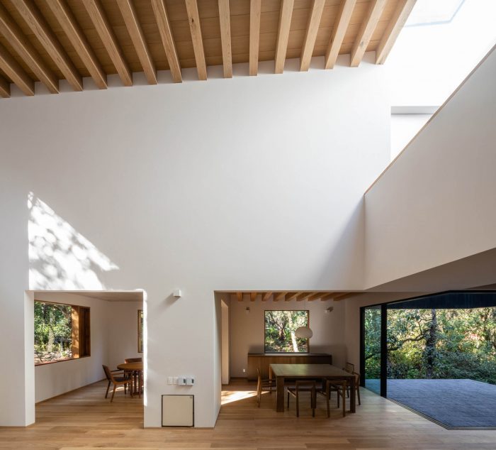 This grid resulted in three main voids: each has a particular purpose that complements the interior space, views and terraces. Finally, it establishes a dialogue between the natural scenery surrounding the house and its structure.