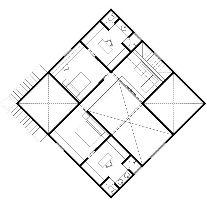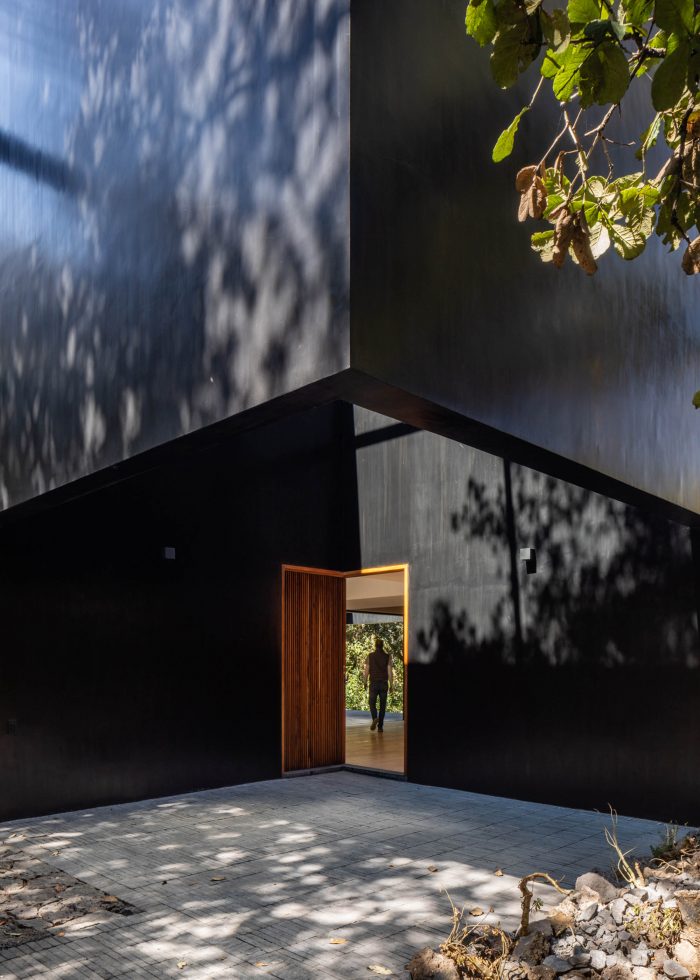 建筑概念涉及到在自然地形上的地下室上的一个开放计划的想法。这是在基本的几何学和结构的交叉点上进行交易,定义了房子的空间。