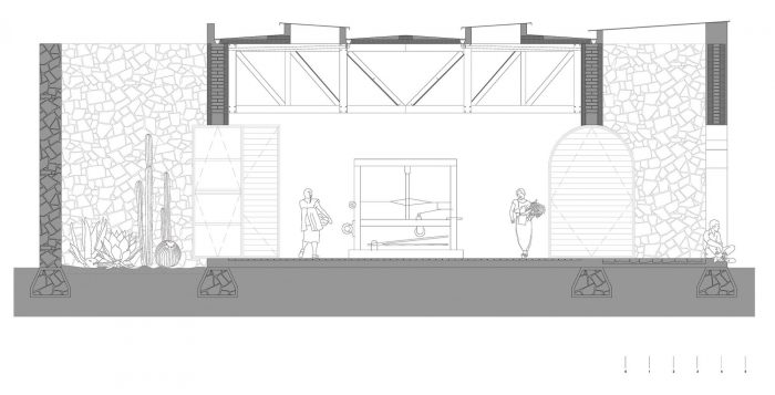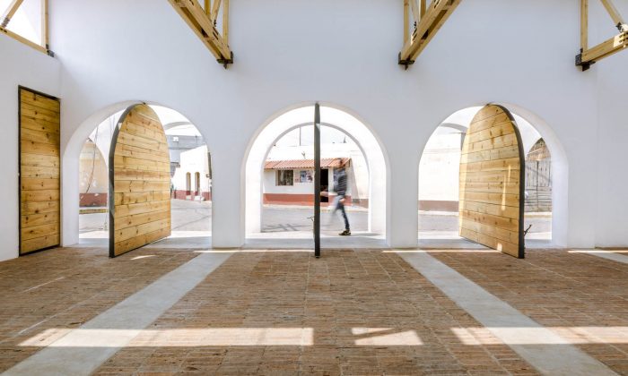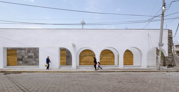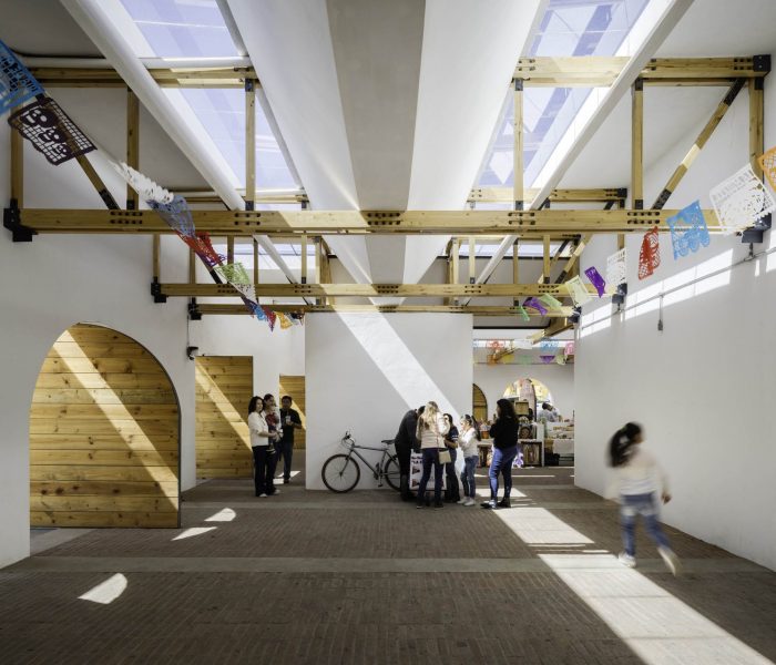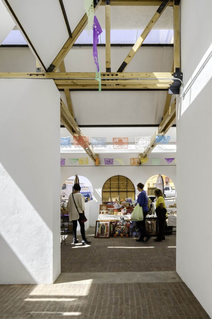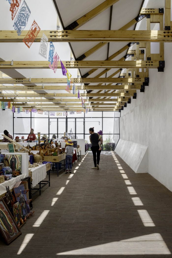 The market recovered the side walls and foundations of a disused building, and consists of two naves and a front corridor. The upper nave houses fourteen venues, the smaller nave has a space to give workshops to tourists and students, and each space is linked to a patio in case it is necessary to extend activities abroad. The walker consists of a series of arches and a rectangular frame as a dialogue between a contemporary and vernacular language, the space serves as a meeting point.