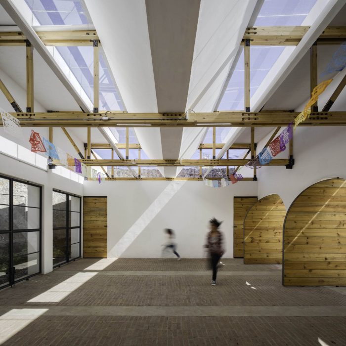 The construction system consists of load-bearing walls and open-beams based on laminated pine wood. At the same time there are two domes in the long direction of the naves, these allow natural light, and this is later bounced in a parasols recharged in the diagonals of wooden frames, the idea is to have a natural and clear lighting throughout the entire market, besides presenting an iconic element that generated appropriation and pride to the inhabitants.
