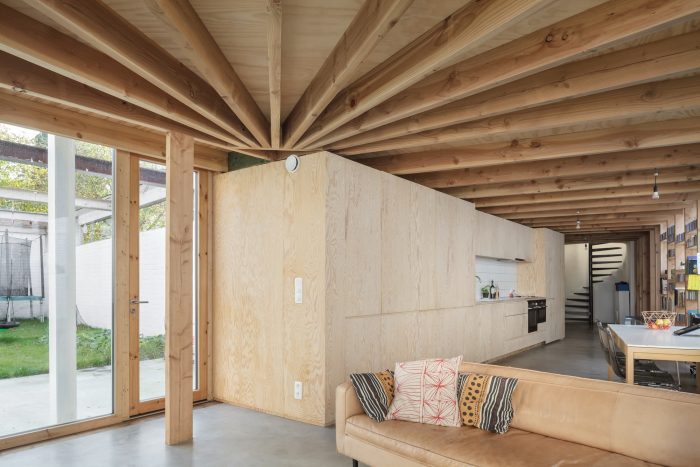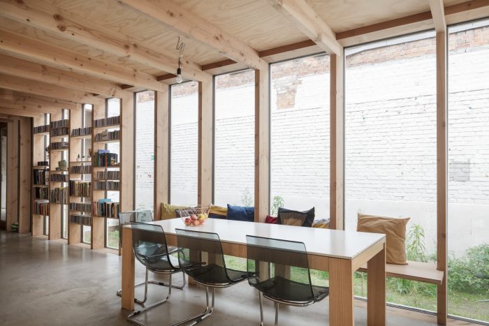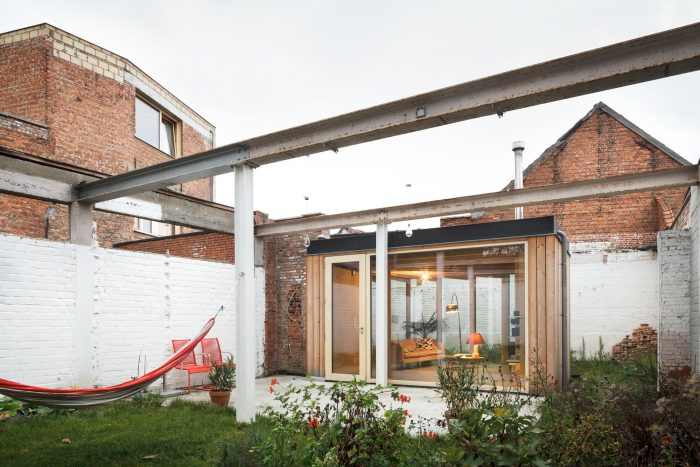 A typical challenge for Belgian cities today is to make their 19th and early 20th-century urban fabric more liveable and sustainable, without driving away all economic or manufacturing activities. Most of these areas are characterized by a mix of industry and housing, high land occupation, hardening of open space, and soil pollution. Today most of the industry has moved away from these areas and the infrastructure over time has been parcelled out to small-scale private owners. “Pitting” is one of the strategies that many cities include in their urban policies for these areas, trying to avoid tabula rasa. The tmSN house does so in a radical way.
