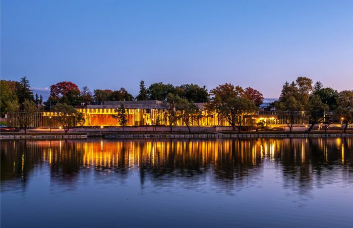 The 7,150sm (77,000sf) theatre is situated on the banks of the Avon River in Stratford, Ontario. Vibrant transparency runs its entire length with a lustrous façade that ebbs and flows in step with the river. This organic, curvilinear form creates quiet folds and eddies of encounter across a sequence of carefully considered spaces that flow from one to another. Panoramic garden and river views dissolve the line between indoors and out in this LEED Gold registered design.