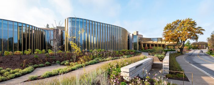 New community gardens provide riverside vistas and strolls through plantings layered with indigenous species for the spring-through-fall performance schedule of North America’s largest repertory theatre company. The new theatre is one of four festival venues and replaces a previous and inadequate Tom Patterson Theatre on the same site.