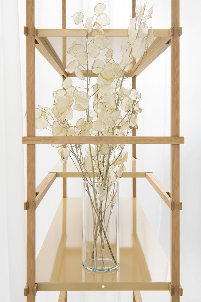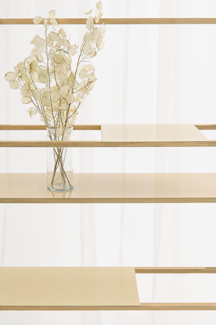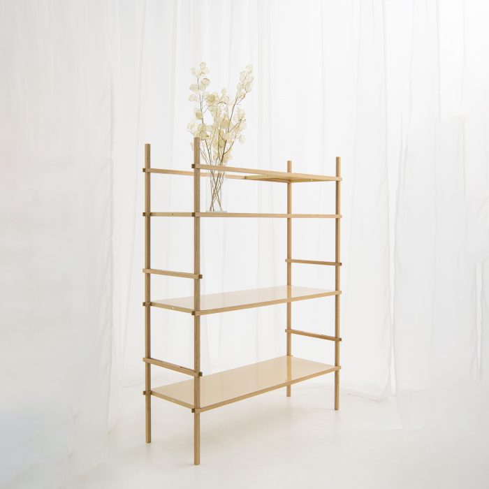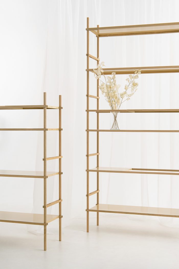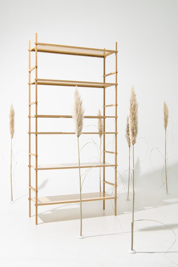 Tongs is a minimalist shelving system created by Germany-based designer Anja Bachmann. Tongs is a simple shelving system that requires neither tools nor screws. It follows a basic design principle: the elasticity of wood. A clamp is joined with a groove to form a simple and smart connection, offering reliable hold and allowing for the shelves to be set up in various ways. The different lengths of the removable shelves allow the rack to hold larger objects as well. In addition, the clamps make it possible to flexibly rearrange, open and close the shelving system.
