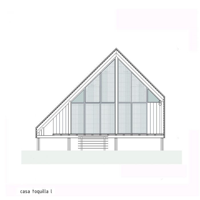 第二个住房原型Casa Toquilla L,面积为80平方米,直接建筑成本为20,000美元,是在一层楼上开发的toquilla住房版本,为由老年用户或行动能力下降的人组成的家庭设计。该房屋最多可以容纳8人。与Casa Toquilla M不同的是,这个房子根据家庭的要求被分隔成三个空间以解决隐私问题。两个卧室和一个公共区域,其中也有休息空间。保温策略,如地板上的网格来循环冷空气,以及带蚊帐的pambil屏风,就像之前的原型一样被复制了。