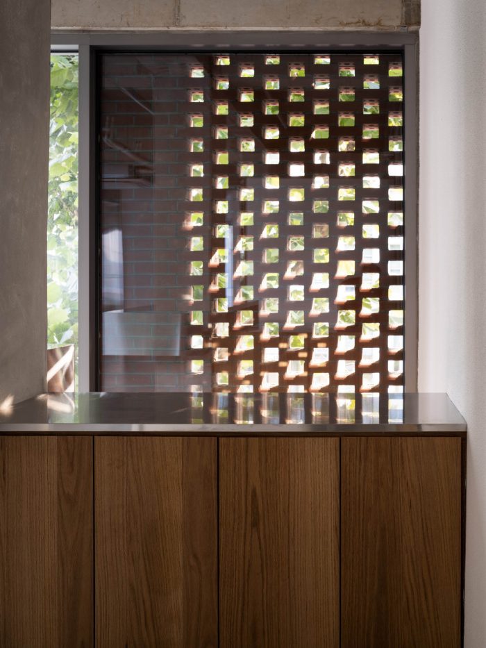 室外的树叶通过室内陈列设置的镜面进一步反映出来,在室内呈现出一种放松和时空的感觉。空间元素不多,但具有指示性,漂浮的线性项目将人们的视线引向外部的开放感叹。