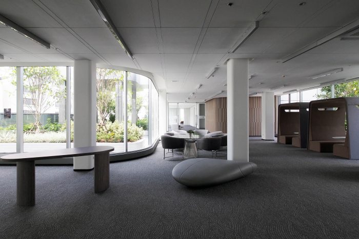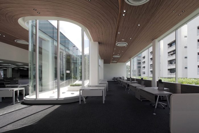 ASWA designs a new office complex where the architectural curve meets the landscape curve to create the fluidity between exterior and interior space. Located on the east side of Bangkok along the highway, the new Toyota Motor Thailand Marketing Complex aimed to connect people and green areas from working spaces to green courtyards welcoming natural light and greenery views for everyone to relax during working hours.