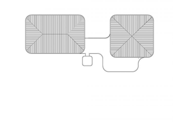 考虑到现有的场地,作为丰田汽车的试车区,驾驶轨道的概念被选择应用到建筑的布局和景观中,这可以从弯曲的边缘注意到,在建筑的每个角落都有一个赛车道的转折点。同样,绿化景观将从一个重叠的计划中放置在每个负空间。