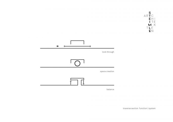 It forms the prelude to an appropriate experience of the World Heritage Site and introduces visitors to the theme of this special place. Integrated into the landscape of the pine forest in front of it, the pavilion provides a first view of the architectural monument, guided by the long-stemmed pines of the forest. The visit is comprehended as a sequence of experiences in analogy to the effects that Hannes Meyer called "psychological effects" and which are intended to emphasize the physically temporal dimension of the architecture.