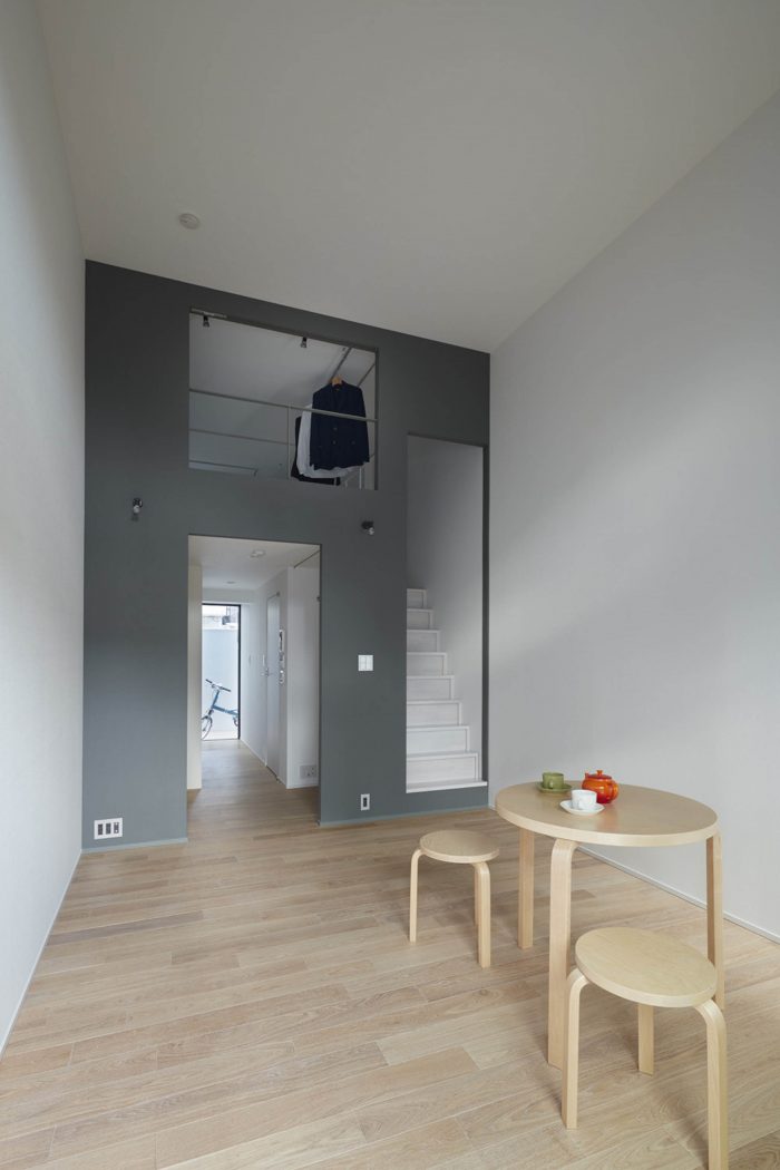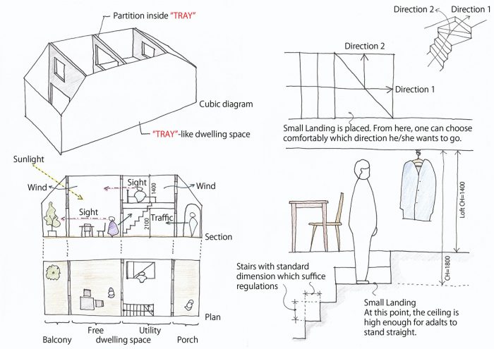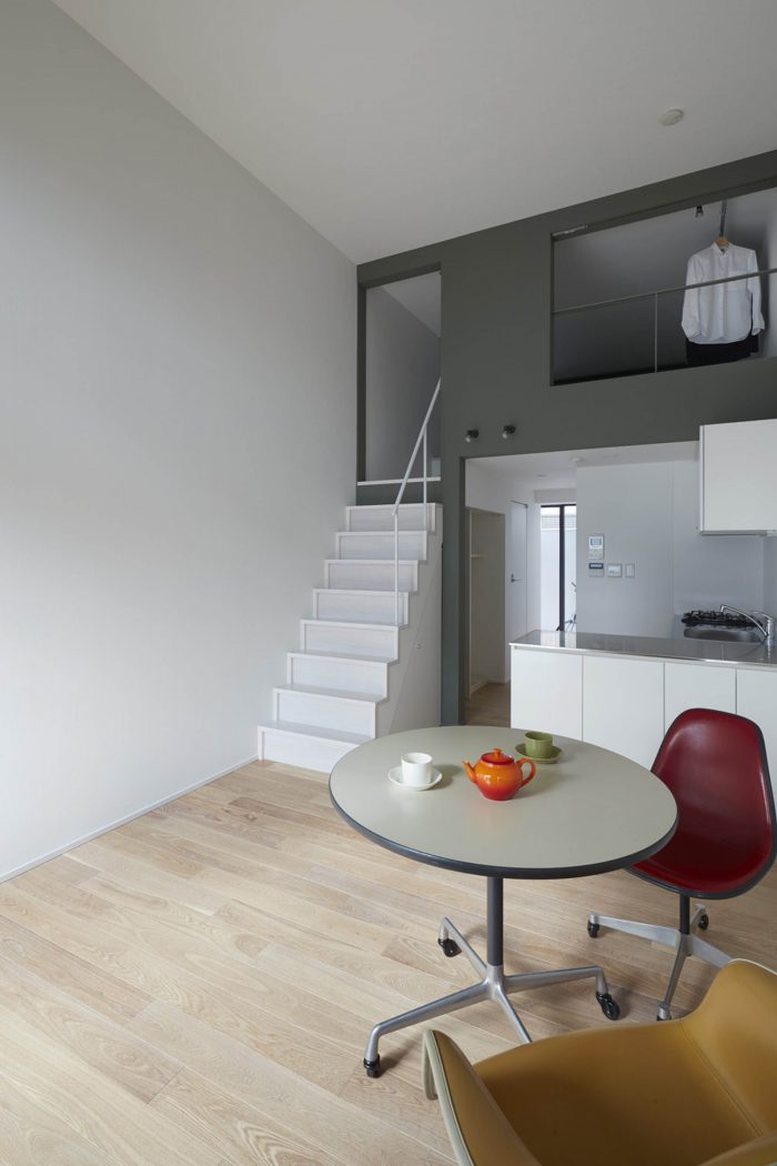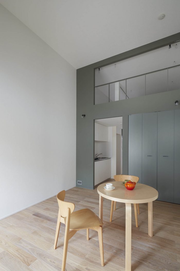 The building condition of the premises allows three-story reinforced concrete apartment building, however two-story wooden apartment was chosen in consideration of rent balance. Being categorized as two-story wooden apartment with loft in building regulation, this apartment was designed as quasi-maisonette with better access to loft space which is spacious and habitable.