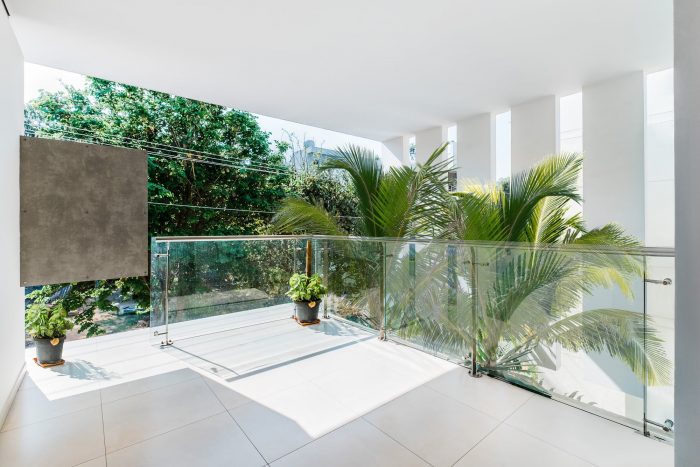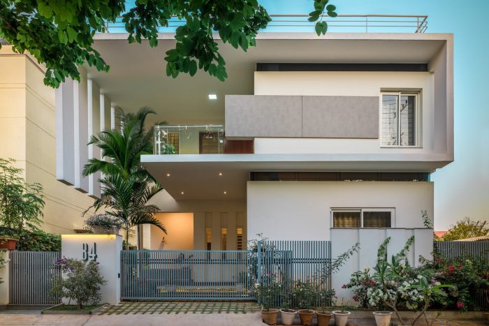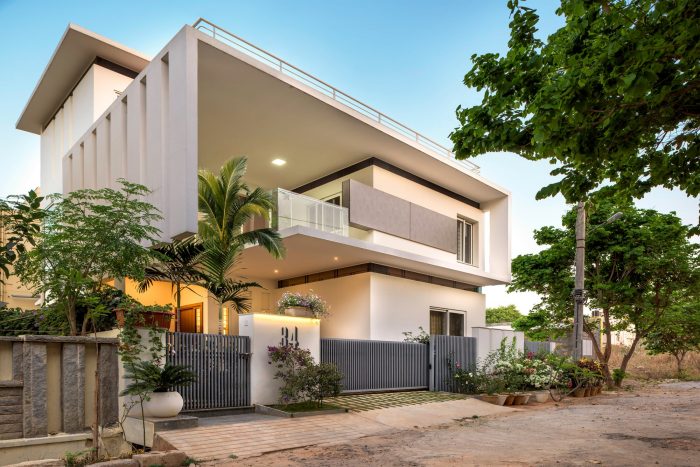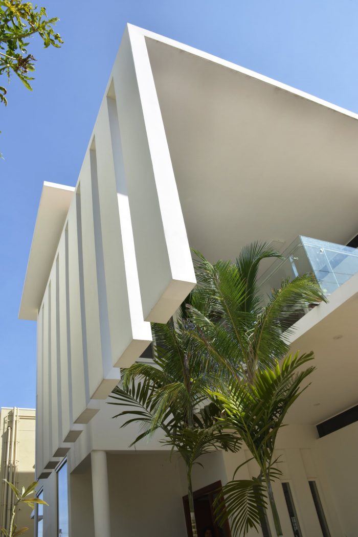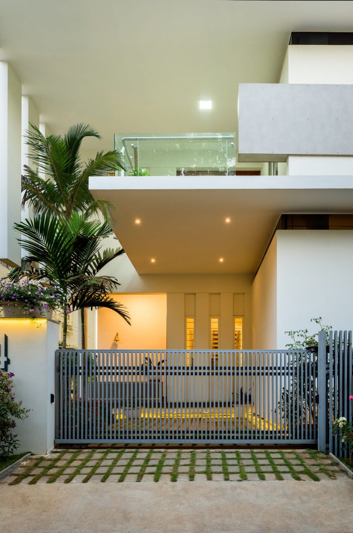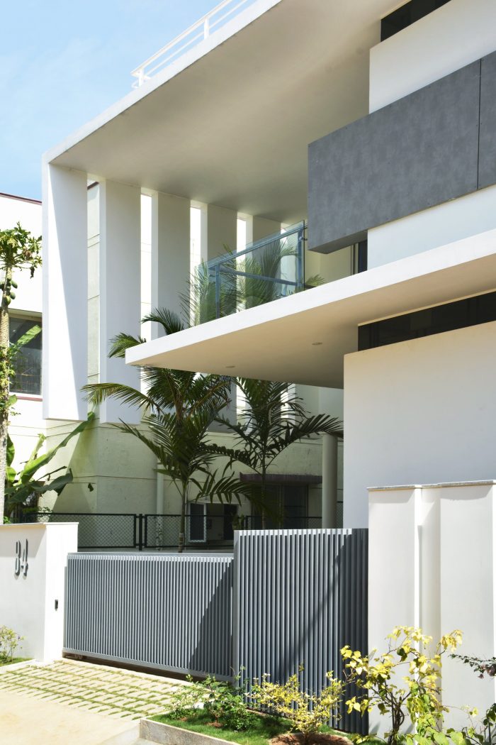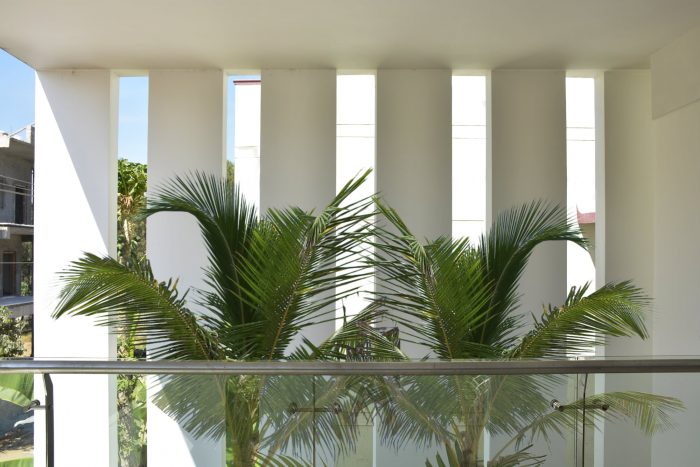 In a dense urban context, we embraced nature with our built environment to focus on the dichotomy of interior and exteriors. The Palm tree that divides the parking and pedestrian path at lower level, acts as a visual treat from Master Bed and common balcony at first floor with its foliage flowing into the balcony.