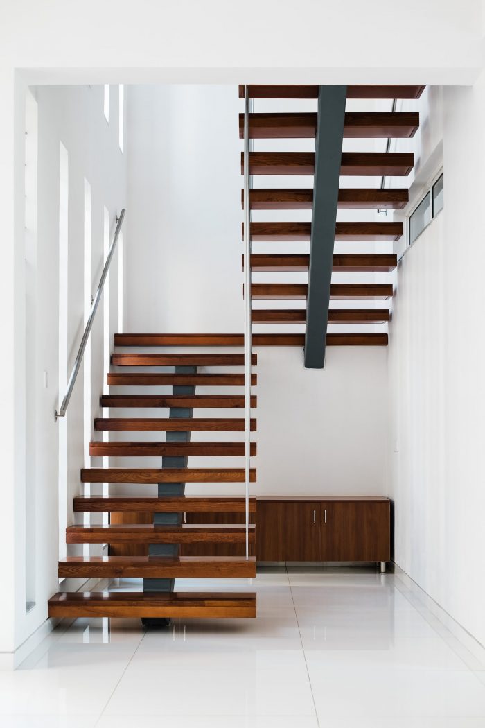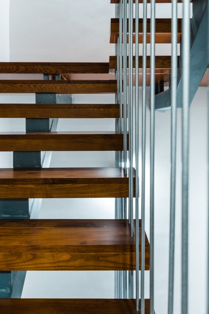 内部装修。FSC认证的柚木被用于门窗、木制台阶、木制地板和小家具。