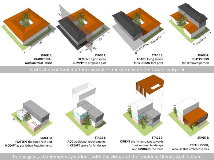 The concept was conceived as an abstraction of the traditional “Nadumuttam (central courtyard) concept” in most of the houses in Kerala, wherein the homes are composed around a focal landscape feature usually a Tulsi plant.