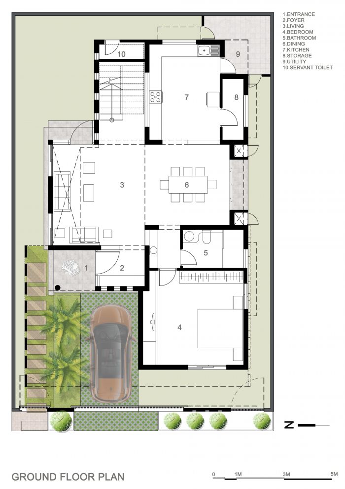 一个位于40'-0 "X 60'-0 "地块的单人住宅,是在对位置和方案的细节进行严格调查后演变而来的。我们的客户P.V.Varghese先生是我们合作设计过程中的一个重要伙伴。作为对他的设计简介的回应,我们提出了 "树木拥抱者之家 "的想法。