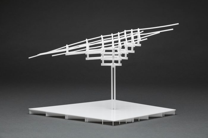 The potential of the wooden bracket system comes from its flexibility in terms of size and form. Unlike other structural systems, the wooden bracket system is made of a combination of joinery between discrete wooden members. This versatile combination could theoretically be applied on different scales. It is also possible to create various roof shapes by changing the angle of the joinery. The morphological variation of the bracket system, which begins at the top of the pillar, produces a cantilever to support eaves by fractal-like (or tree-like) proliferation. The bracket system with this geometric transformation combined with the curved elements of the eaves makes up the character of East Asian wooden architecture. The Tree Series is about finding new opportunities to evolve the system, taking advantage of its mathematical variations by using algorithmic design and digital fabrication technologies.