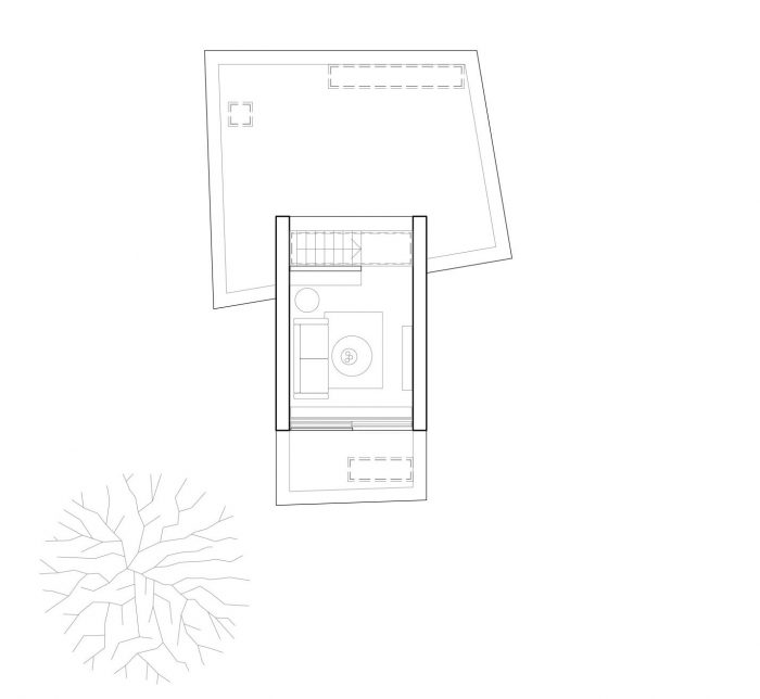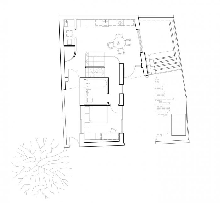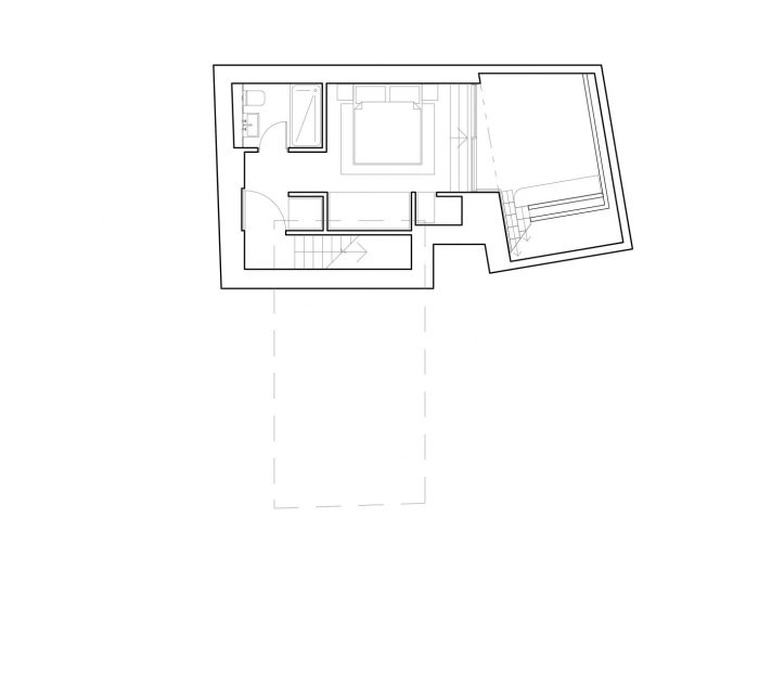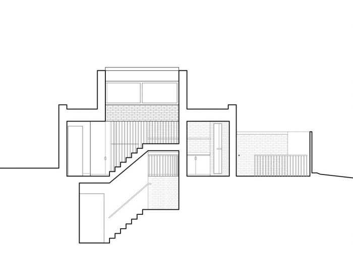 Upon entering the home along the secluded western boundary, the entrance lobby leads to a rich split-level arrangement of rooms in a vertical spine of circulation. Living spaces flow from the front to the rear of the site with the kitchen and living room on the uppermost stories making the most of natural daylight.