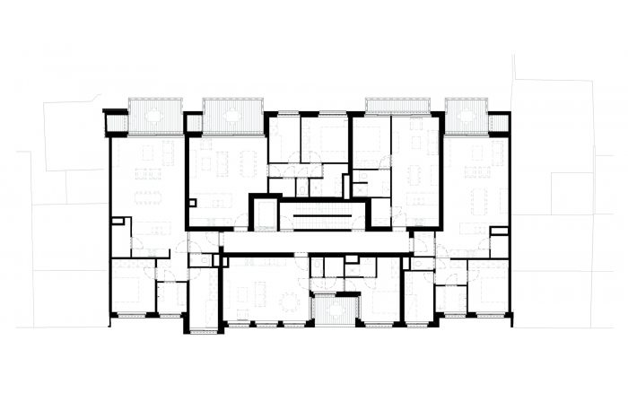 随着这种排屋的消失,内环路和外环路之间的主要通道上的建筑所特有的小规模和魅力也往往消失了。通过这个项目,我们想对这种城市更新的趋势作出回应,并试图通过制造有吸引力的建筑来扭转人们对集体住房的不利看法。