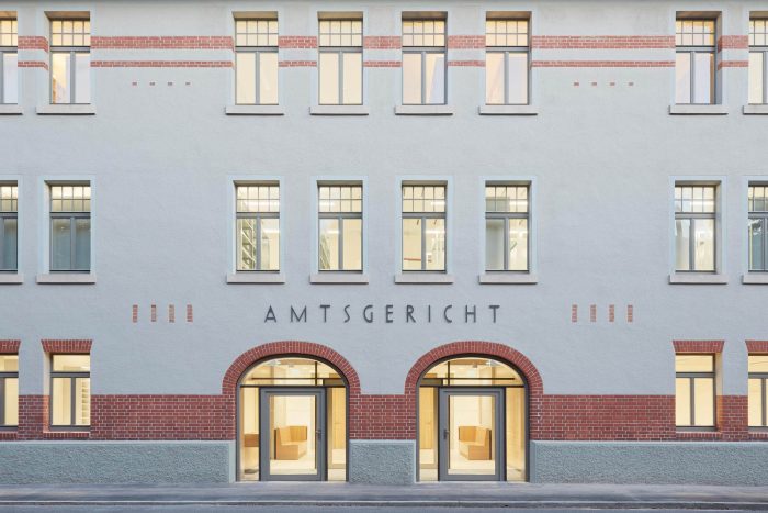 As a sign of the new identity, the timelessly elegant Mahlau lettering “Amtsgericht” floats above the entrance and enters into a congenial synthesis with the architecture as both a carrier of information and an external ornament.