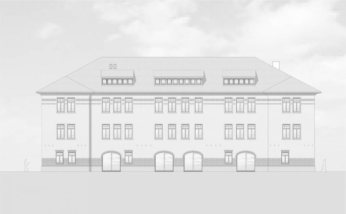 Due to its use as a vehicle hall, the fabric of the building had been severely damaged, which made it necessary to replace the ceiling above the ground floor with extensive support measures.