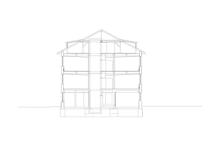 后面的原车库门被打开,使光线进入法庭。让人联想到木质大门,玻璃窗格在深度上错落有致,使立面具有移动的画质。门厅以其巧妙地放置了稀疏的点缀,反映了法院的尊严。插入的钢筋混凝土天花板,与被拆除的天花板的表达方式相连,在一些地方可以看到建筑。粗糙的石膏墙和打磨过的裸露的砂浆与家具的橡木木材形成和谐的对比,而不对称的钢筋混凝土柱子则动态地挑起了早期功能建筑的脆性。