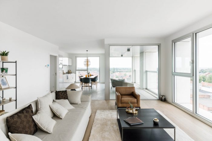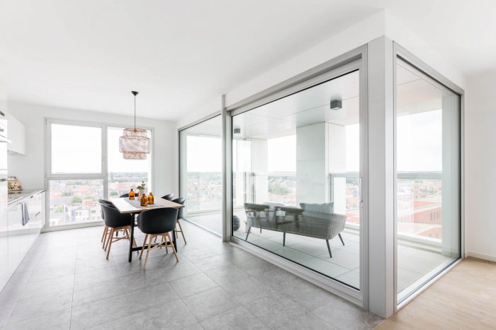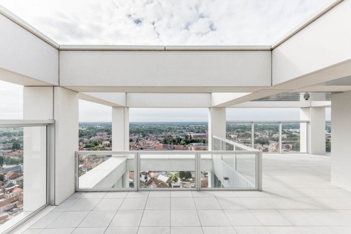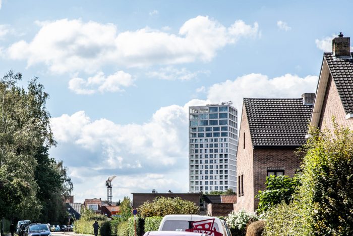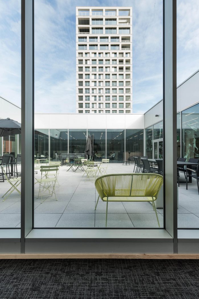 The Turnova tower is the beating heart of this new district. The 75m high tower contains twelve residential floors, two floors of offices and three floors with restaurants and catering. All apartments have spacious indoor terraces that offer adequate protection against the wind. A balcony and a gastronomic restaurant, accessible to the public, are located on the top floor.