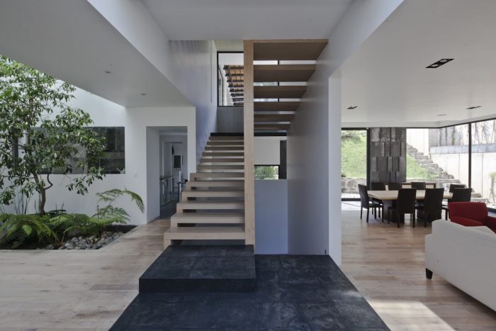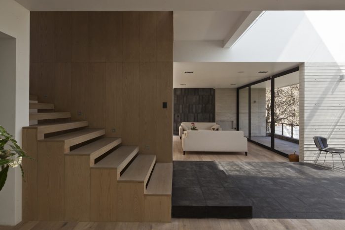 Casa U is located in the suburbs of Mexico City in a very steep and hilly site overlooking the Valley of Mexico. The pronounced slope generated a sitting that emphasizes the intimate relationship between the spaces of the house with the site´s topography.