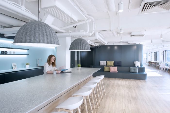 The space was designed humanly to connect people, reflecting the company’s ethos. Thus the heart of the workplace is a café pantry, designed to support large social events, independent working and informal meetings. It includes a collaborative bar island, stage seating, and a 20m long signature ‘Bean’ table with integrated cushioned seats facing the city’s racecourse and sports grounds.