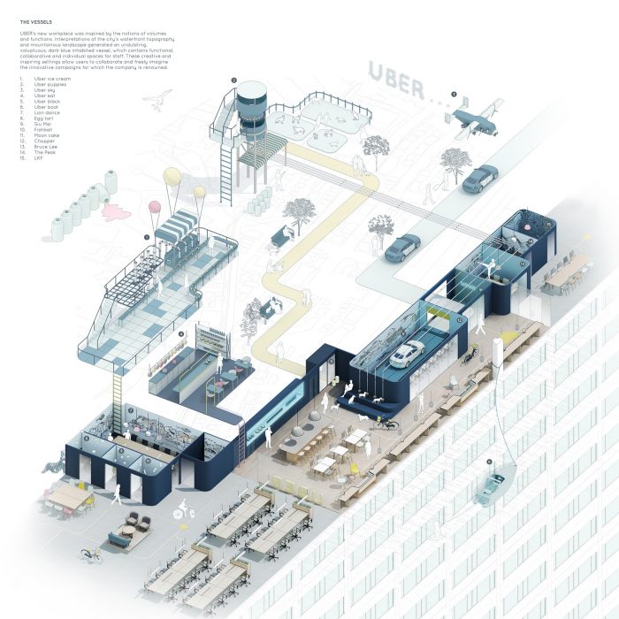 Bean Buro’s design for UBER’s new Hong Kong office takes inspiration from Gottfried Semper’s writings on vessels, where he described the notion of form and function acting as a structured whole, with individual parts fulfilling their own function while cooperating with others to achieve an overall aim and effect.
