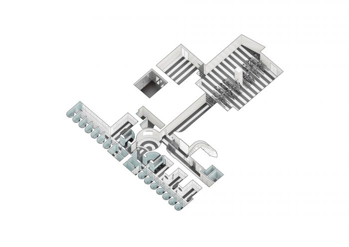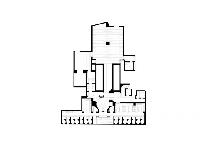 Working on their second project in London after the Swiss Church, the architects freely appropriated classical forms and symbols, designing a lobby that defines UK House’s central hub and fulfilling a function crucial to urban life: allowing commu- nication and interaction to unfold.