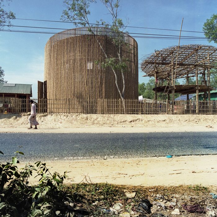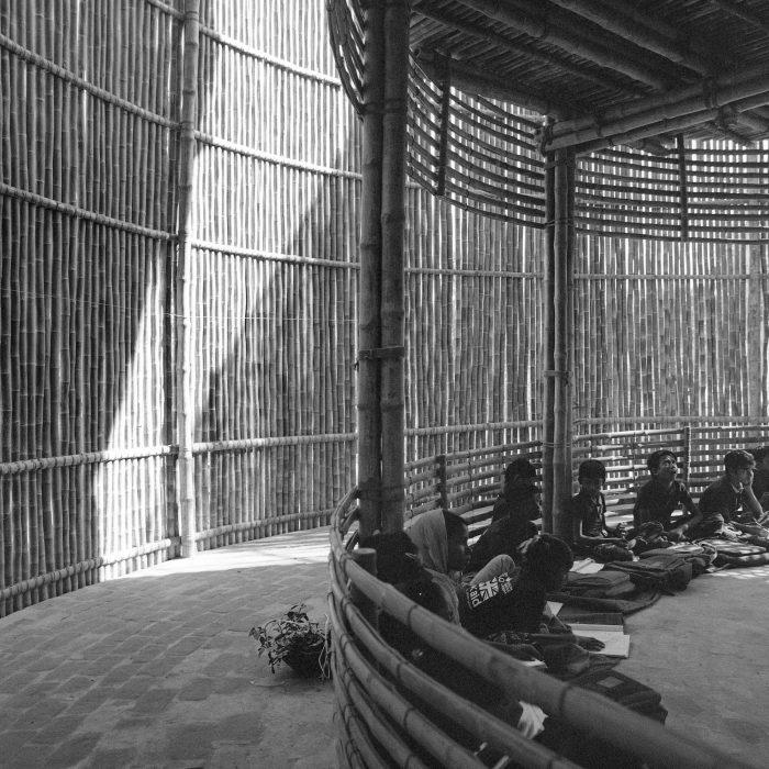 This prototype school was designed for construction within the Rohingya refugee camps, arguably the largest refugee camp in the world, in the southernmost district of Bangladesh close to the border with Myanmar. In view of government-imposed restrictions on the use of ‘permanent’ building materials like cement, brick, steel etc, the architect opted for the single most available bio-degradable material in the country: Bamboo.