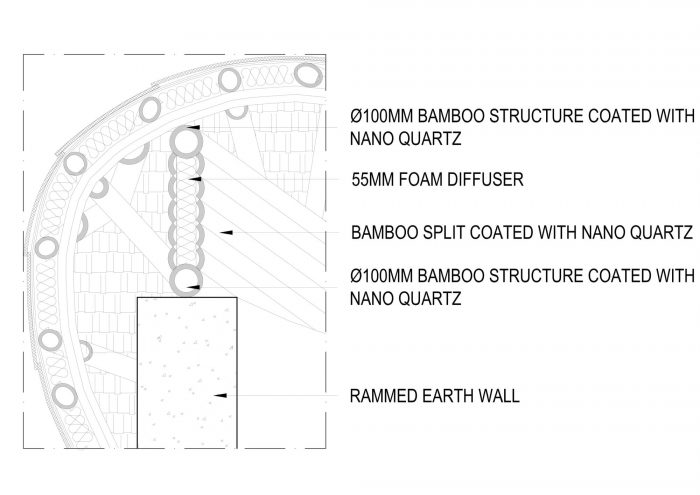 结构的其余部分都是用竹子做的,其中大部分是在现场采摘的。这种快速生长的材料不仅具有难以置信的可持续性,其灵活性也意味着我们能够创造出与热带地区丰富的生命相呼应的空间。建筑物被创造出来,试图从周围的元素中进行生物变形,实际上是从地面上生长出来的,在丰富的植被中发芽。