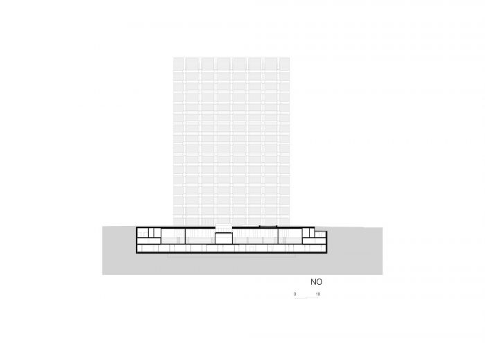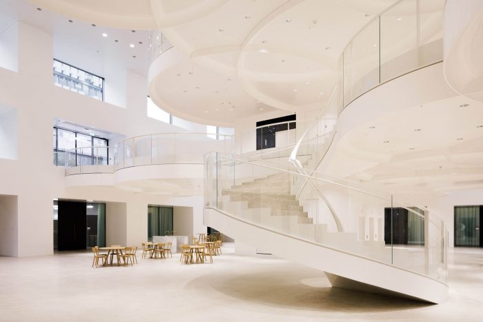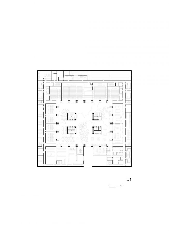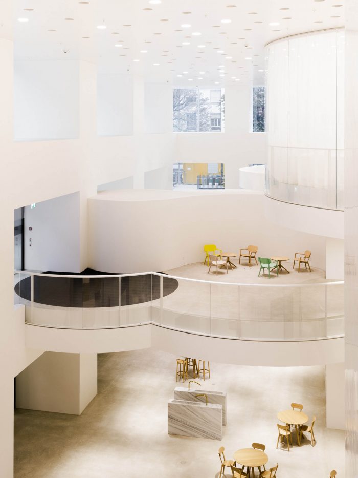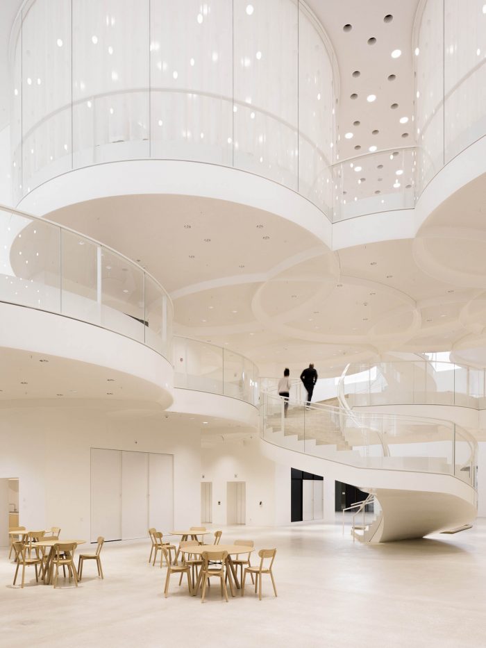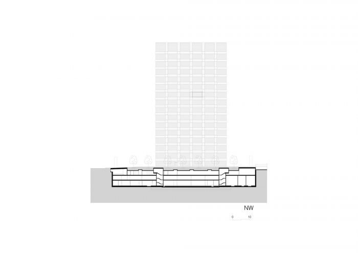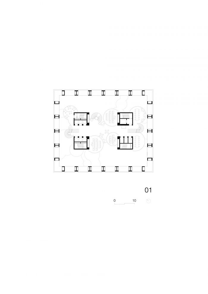 最上面的十层是专门用于科学研究的。每层可容纳四个研究部门,由一个共同的会议室连接。相邻的楼层由一个开放的楼梯间和会议区连接,为科学交流、跨学科研究和偶然讨论中产生的创新想法服务。