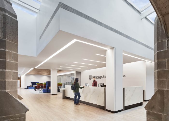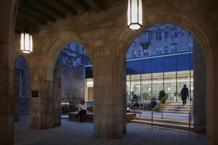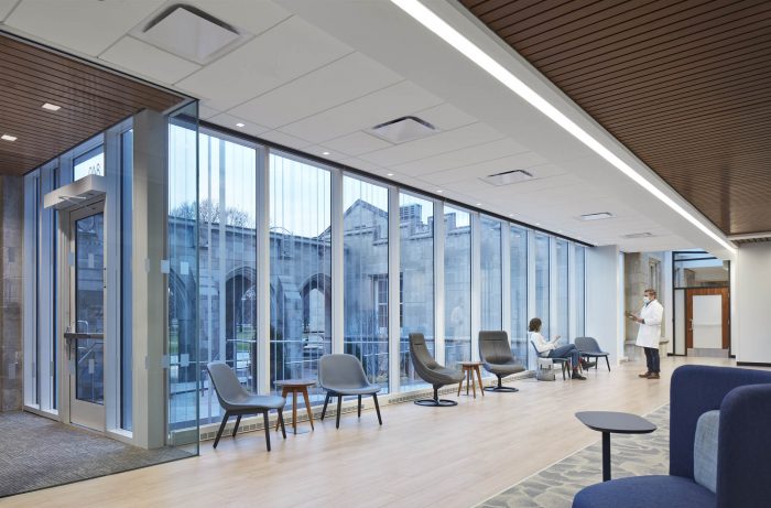 With the goal of taking a more holistic, integrative approach to providing health services to their students, the University of Chicago sought to create a facility that would bring together the departments of Health, Counseling, and Wellness to enhance student care. The new facility, located on the ground level of the historic Lying-In Hospital along the Midway Plaisance, was renovated in keeping with its context and expanded to infill an existing courtyard to create more program space. The facility incorporates principles of health and wellness, sustainability, and best practices for medical planning.