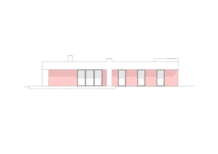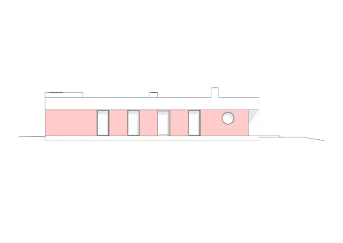 The project is composed of a small number of elements where there are clear guidelines that are repeated and look for moments of exception. The same happens with the exterior openings, which are reduced to a single element that is repeated throughout the house regardless of the interior uses, however, they appear side by side in the common areas that seek a greater relationship with the garden. In the kitchen area, the rhythm is also interrupted by the presence of a circular opening that defines a new composition in the west elevation and establishes a visual connection with the surrounding outdoor area.