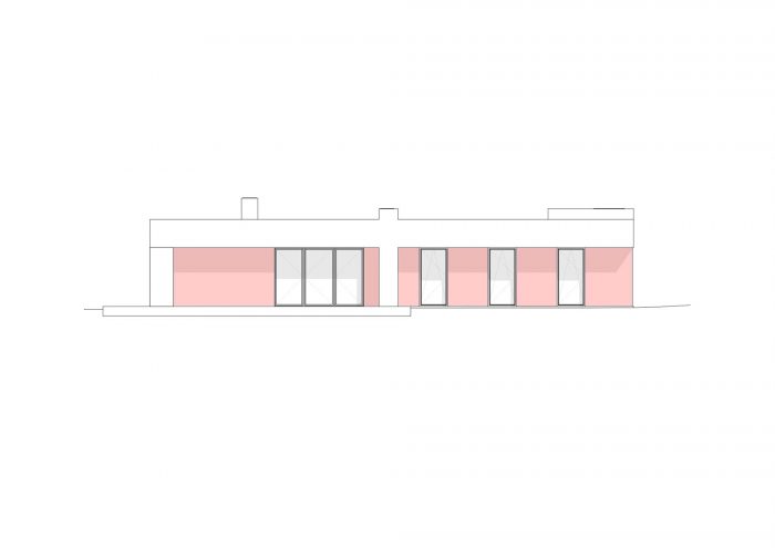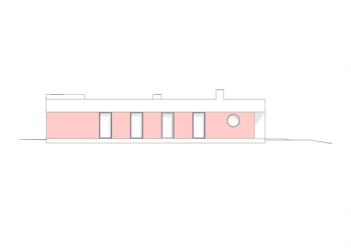 The project is composed of a small number of elements where there are clear guidelines that are repeated and look for moments of exception. The same happens with the exterior openings, which are reduced to a single element that is repeated throughout the house regardless of the interior uses, however, they appear side by side in the common areas that seek a greater relationship with the garden. In the kitchen area, the rhythm is also interrupted by the presence of a circular opening that defines a new composition in the west elevation and establishes a visual connection with the surrounding outdoor area.
