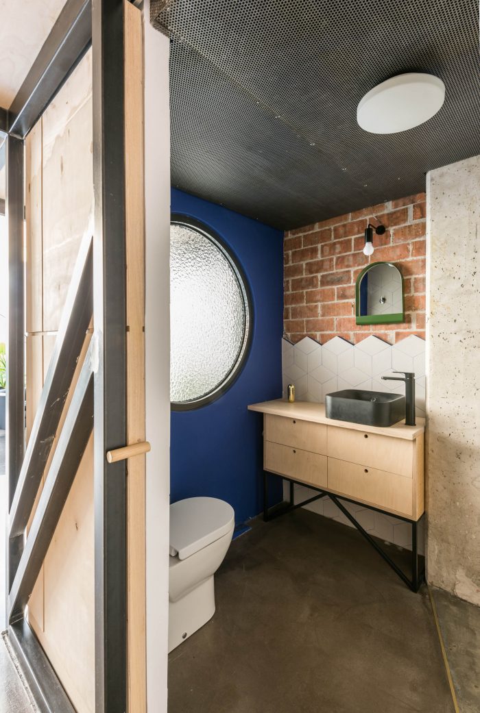 UPHouse is the tail of an implant, the introduction of a space of intimate scale into another space, which, within a domestic diagram, is exposed and social. The project adds 50% more area to the apartment by installing a light steel structure and a staircase that allows access to the new upper floor. To support this floor, six frames that would stabilize and distribute the weight, are located parallel to the walls and surrounding the central and only closed room of the house, the restroom.